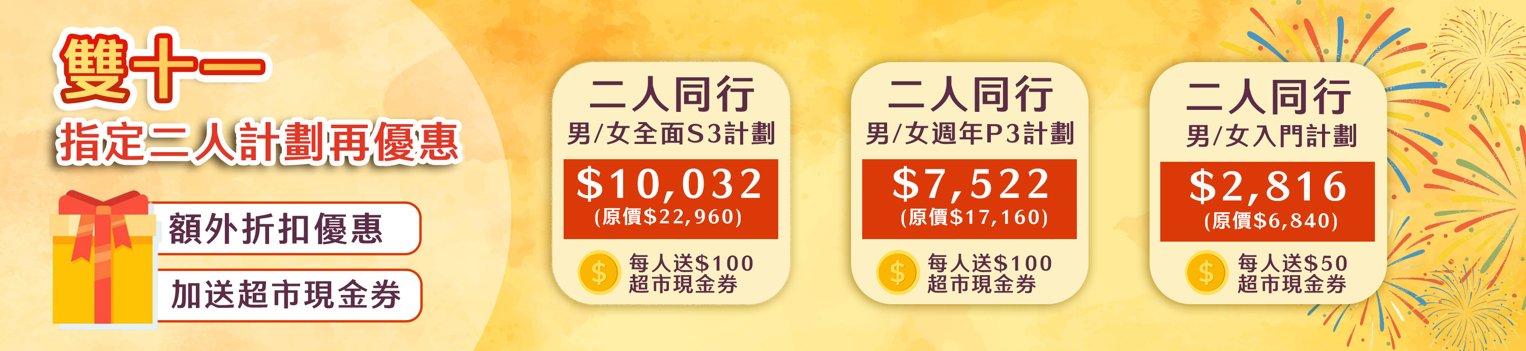 3) 購買2個 男/女 入門計劃,原價$6,840,優惠價$2,816/2個,再每人送$50惠康現金券 (按此了解)