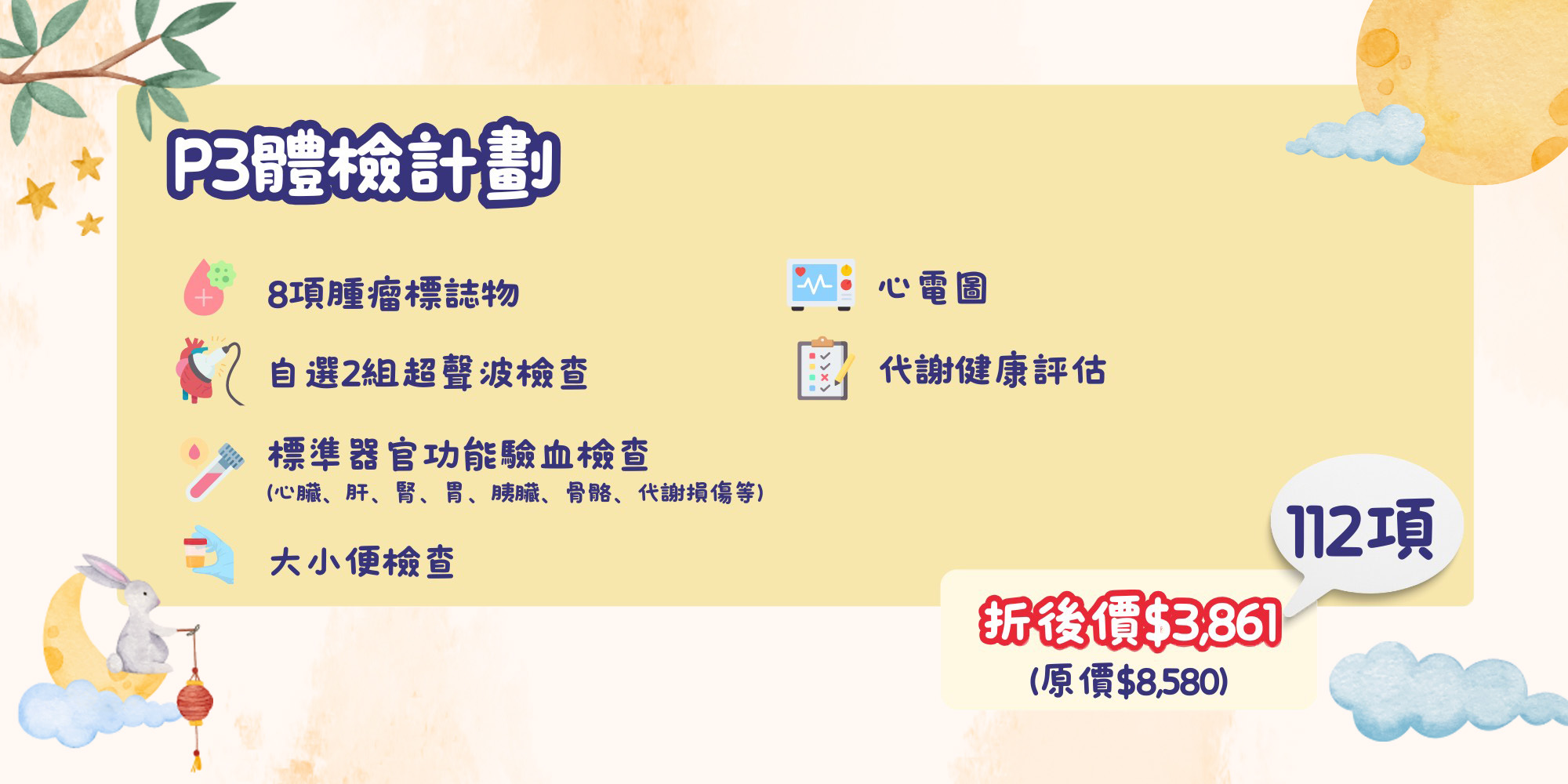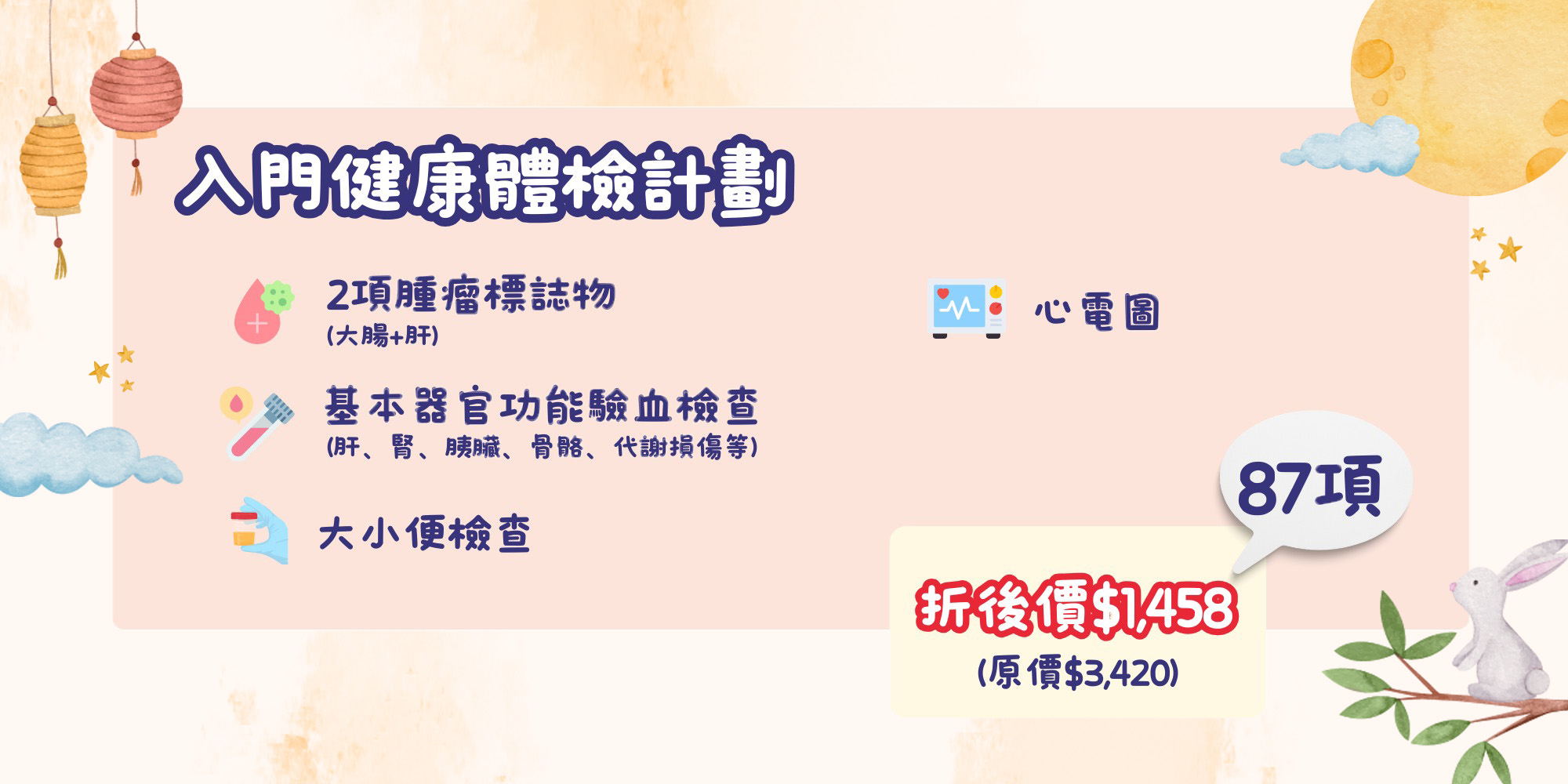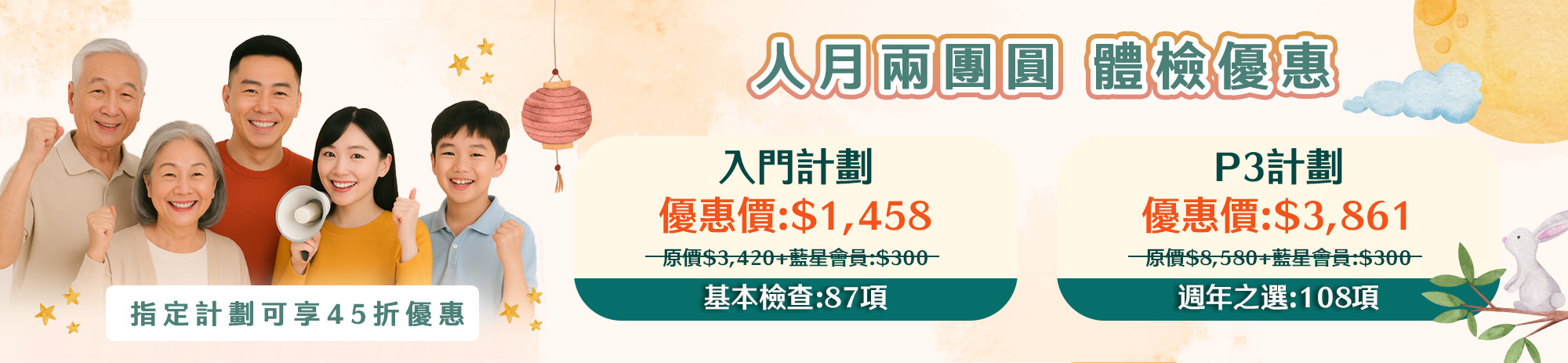 中秋月圓,人月兩團圓。美邦推出「中秋體檢優惠」,男女同享,以全面檢查為一家人健康把關;重點覆蓋三高、肝腎、心血管及超聲波,及早掌握風險,團圓更安心。