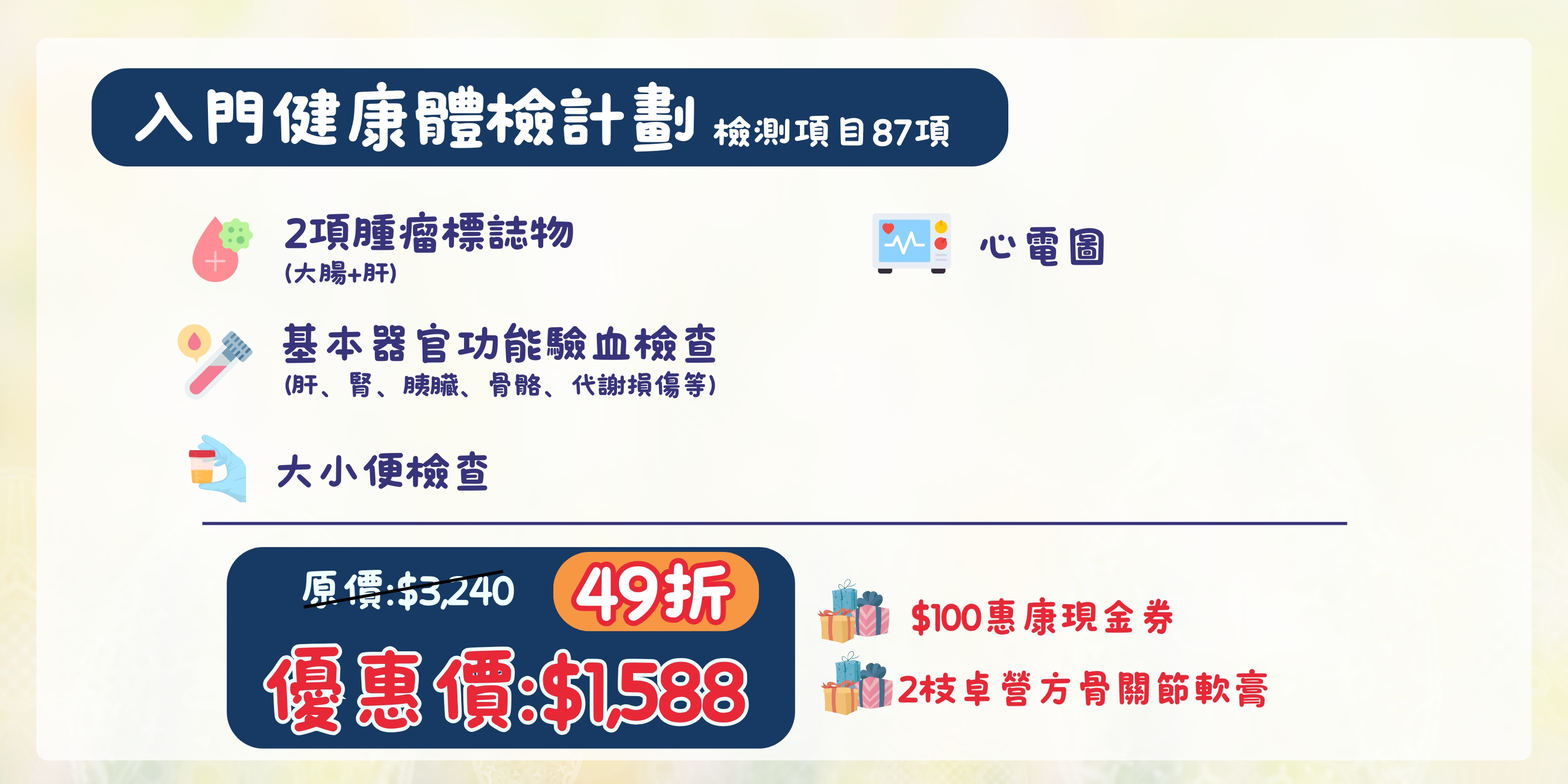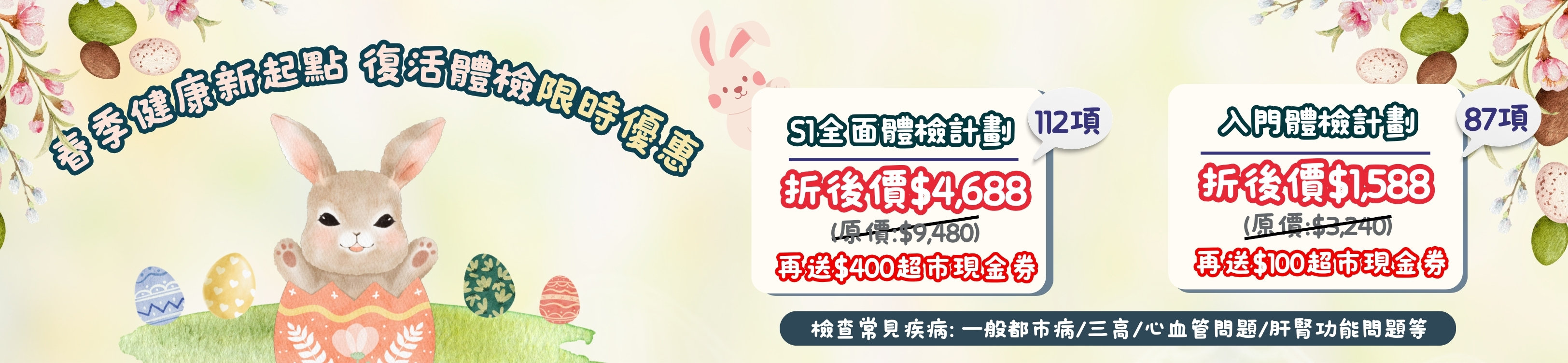 立即把握復活節限定優惠:凡購買指定男/女士體檢計劃+藍星會員($300),即可享會員折扣優惠!