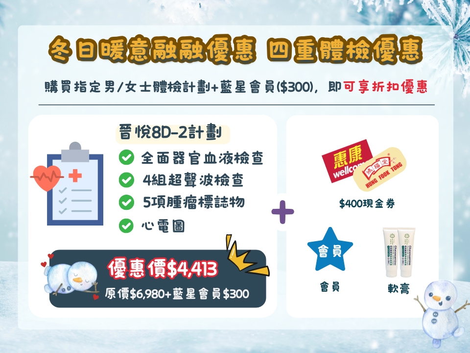 ✅ 肺癌 ✅ 肝癌 ✅ 胃癌 ✅ 腎臟癌✅ 大腸癌 ✅ 頭頸癌 ✅ 鼻咽癌✅ 乳腺癌 ✅ 子宮頸癌(女士) ✅ 前列腺(男士)