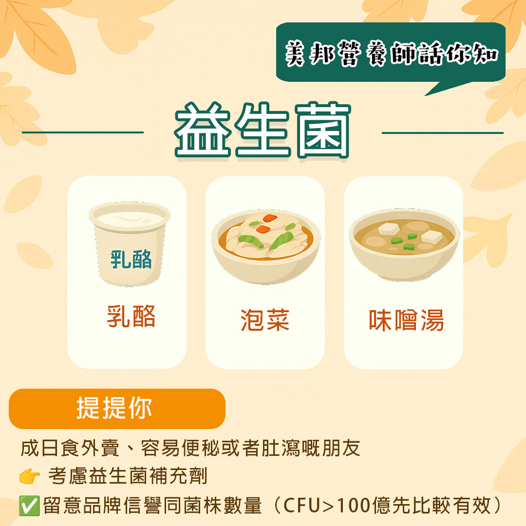 如果你經常食外賣、易便秘或腸胃唔穩,可以考慮益生菌補充劑。