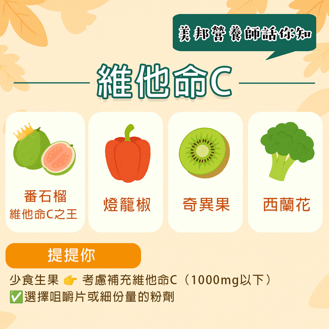 如果真係少食生果,可以考慮維他命C補充劑(1000mg以下)。