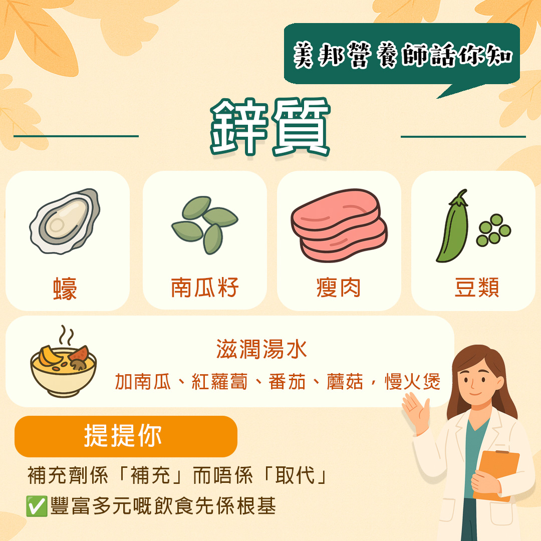 鋅對免疫細胞功能好重要,天氣一轉就要補充返。