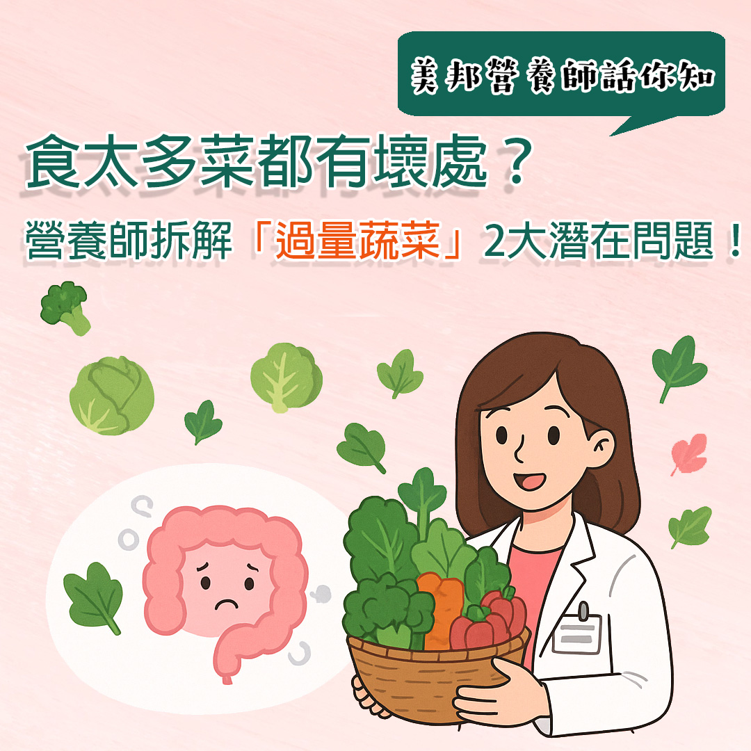 作為營養師,我哋要強調:蔬菜係健康飲食嘅基石,但如果「只食菜」或「份量失控」,反而會出現以下問題:
